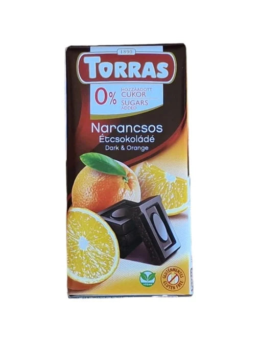 Ciocolata neagra cu portocale fara zahar adaugat Torras 75g