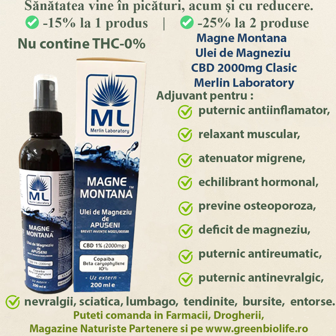 Magne Montana Ulei de Magneziu CBD 2000mg Clasic Merlin Laboratory