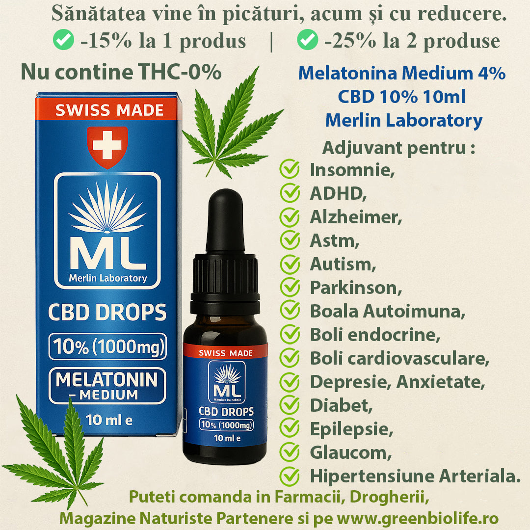 Melatonina Medium 4% cu CBD 10% 10ml Merlin Laboratory