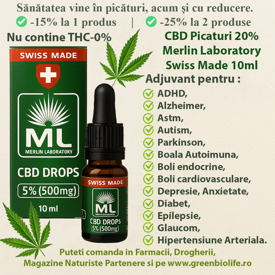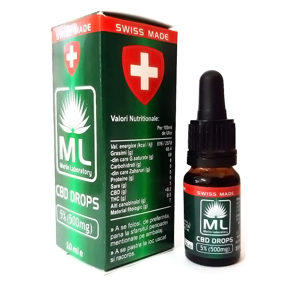CBD Picaturi 5% Merlin Laboratory Swiss Made 10ml