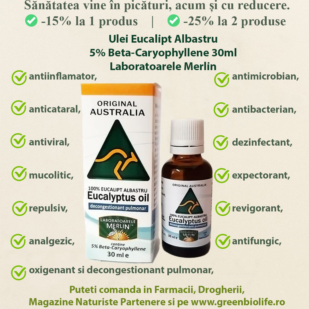 Ulei Eucalipt Albastru 5% Beta-Caryophyllene 30ml Laboratoarele Merlin