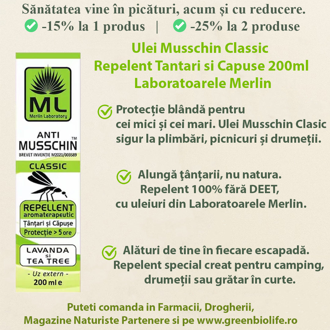 Ulei Musschin Classic Repelent Tantari si Capuse 200ml Laboratoarele Merlin