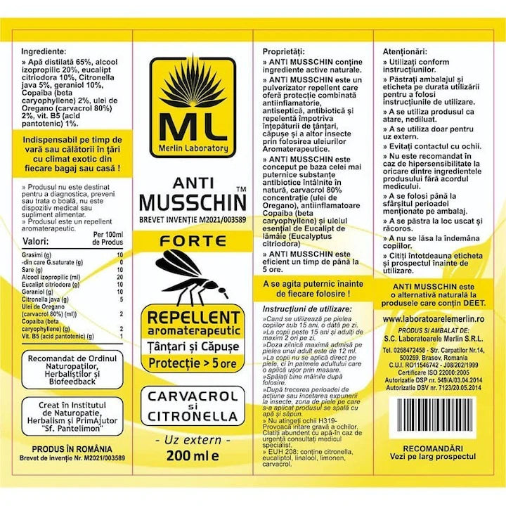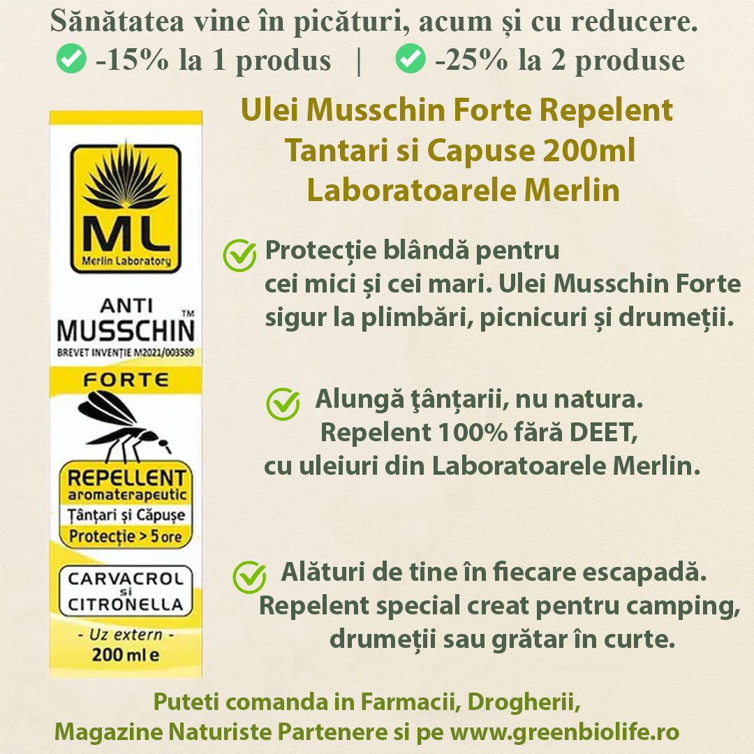 Ulei Musschin Forte Repelent Tantari si Capuse 200ml Laboratoarele Merlin