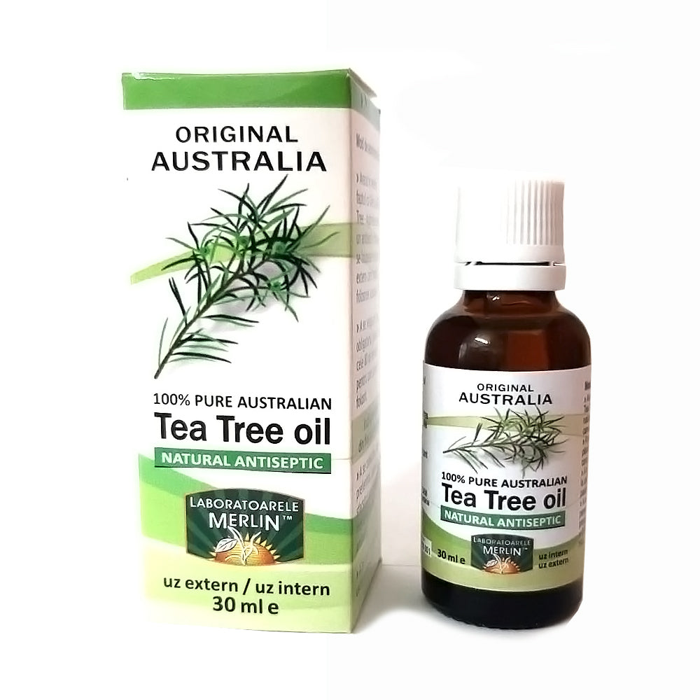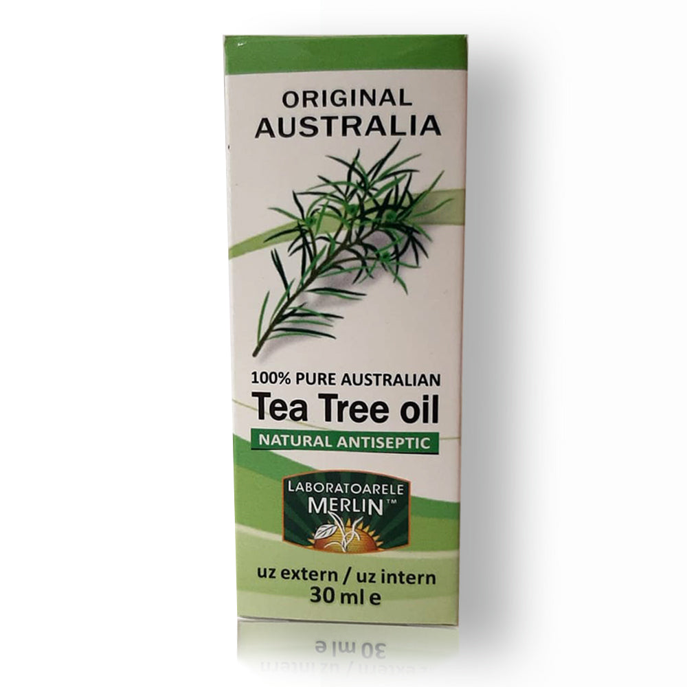 Uleiul esential de Tea Tree produs de Laboratoarele Merlin este originar Australia (a nu se confunda cu produsul similar din China).